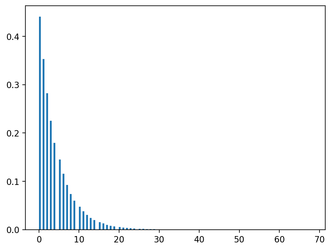 We can verify that \(x\) is indeed geometrically distributed by the following numpy program.
